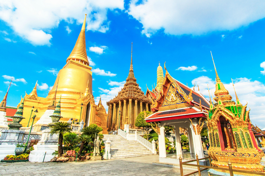관광포인트 : 에메랄드 사원(왓 프라케오 - Wat Phra Kaeo)은 왕궁 내의 왕실 전용사원으로 태국인들의 정신적 심장부로서 태국의 사원 중 최고로 꼽힙니다. 높이 치솟은 궁전과 누각, 사원들은 모두 금박 잎새, 자기, 유리로 찬란하게 장식되어 눈이 부신 이곳은 그 이름처럼 환상적이고 이국적입니다.