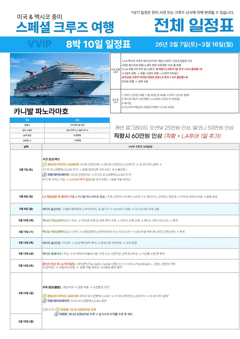 2026년 3월 7일 ~ 2026년 3월 16일 8박 10일 미국 & 멕시코 중미
